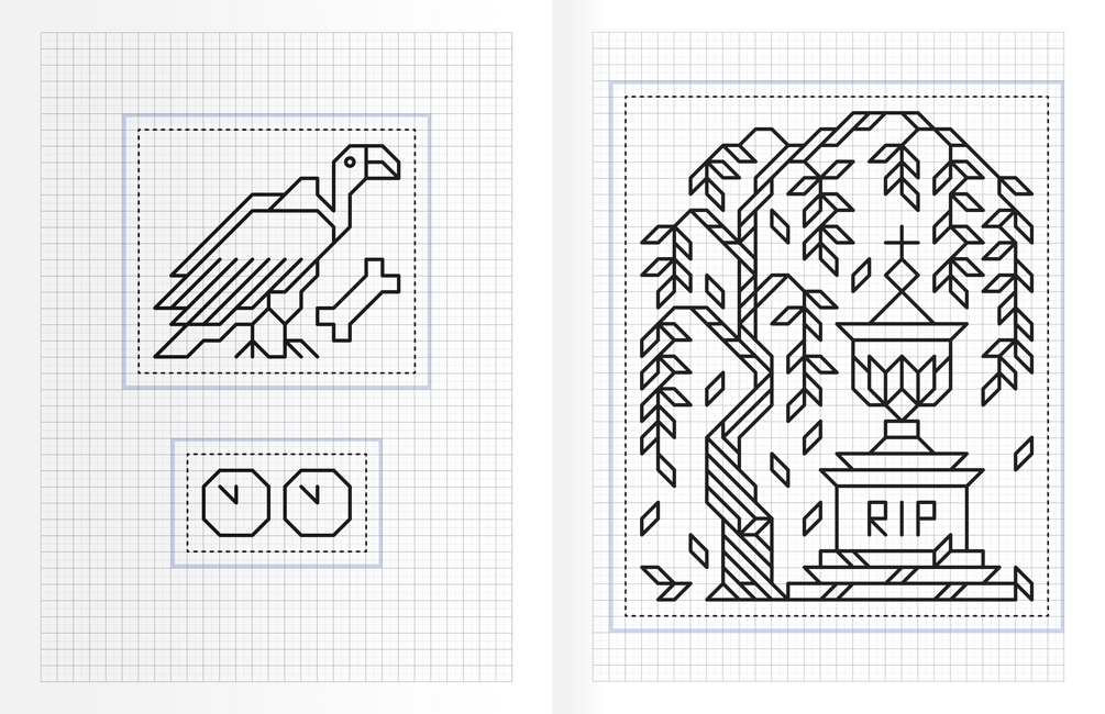 - Graph-paper-compatible charts to print or trace, to help you combine and plan extensions for motifs.