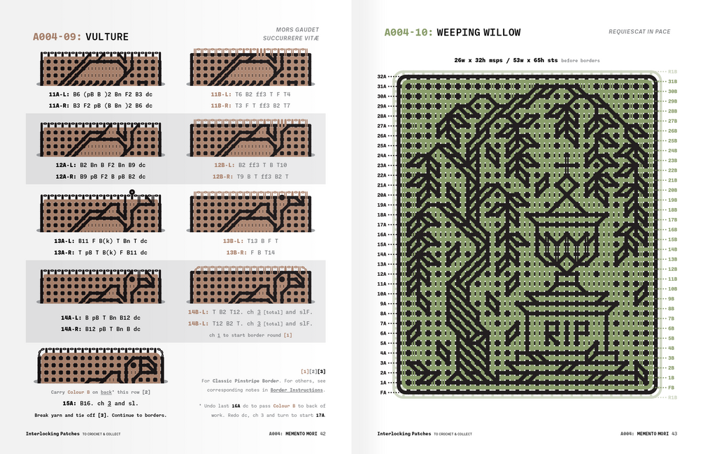 - Patterns feature an illustrated chart for every row, so you can always check your work and get your bearings if you get lost, wander off or space out.