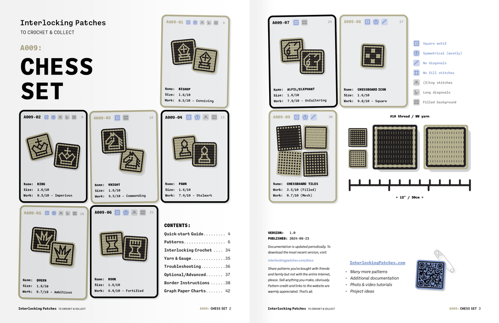 I'm in the process of refreshing all of my patterns to include the newest documentation and make other improvements. Until that's finished, all Interlocking Patches Collections are priced at US$1+.