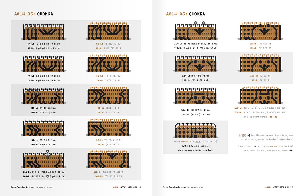 - Patterns feature an illustrated chart for every row, so you can always check your work and get your bearings if you get lost, wander off or space out.