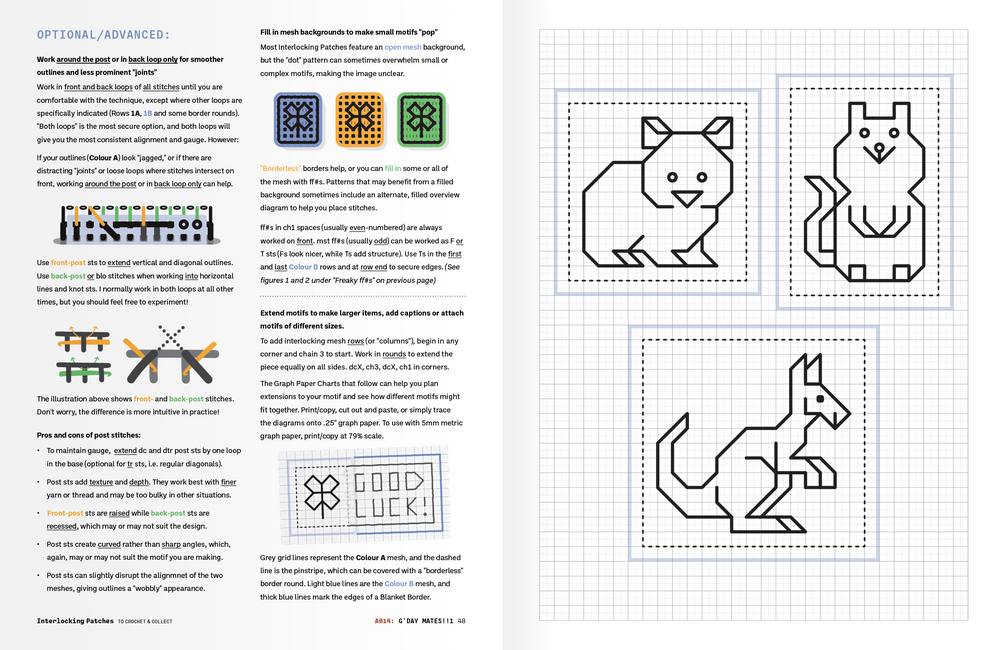 - Graph-paper-compatible charts to print or trace, to help you combine and plan extensions for motifs.