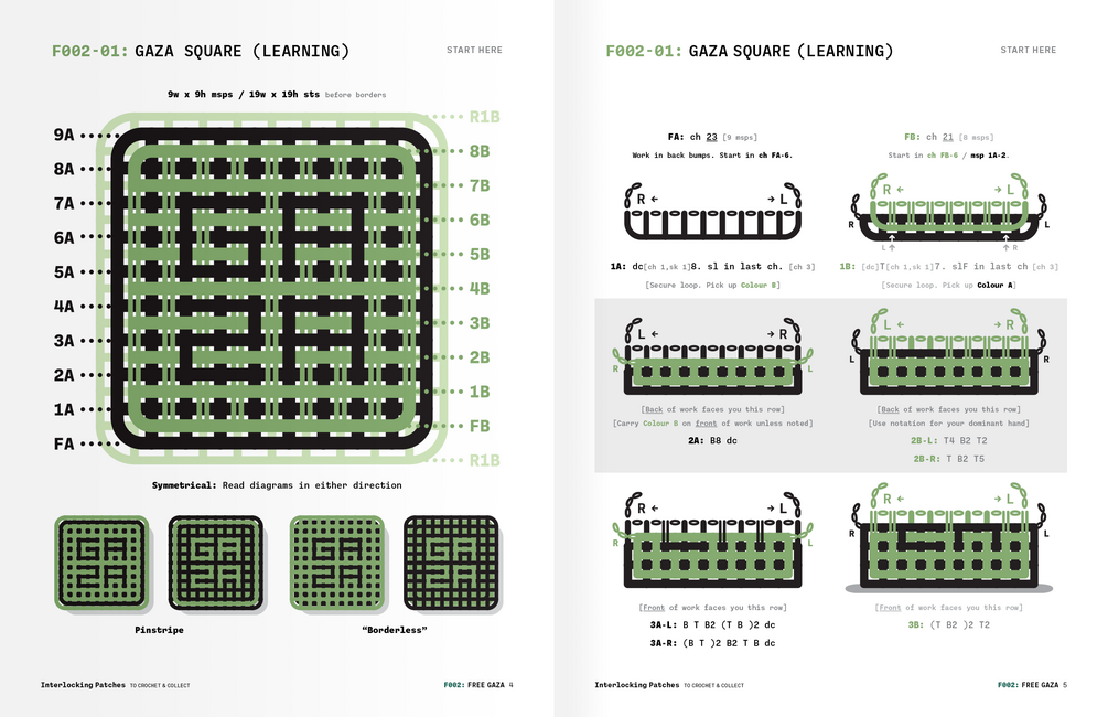 Specially-annotated, beginner-friendly pattern. - F002-02: Gaza Square (Compact)